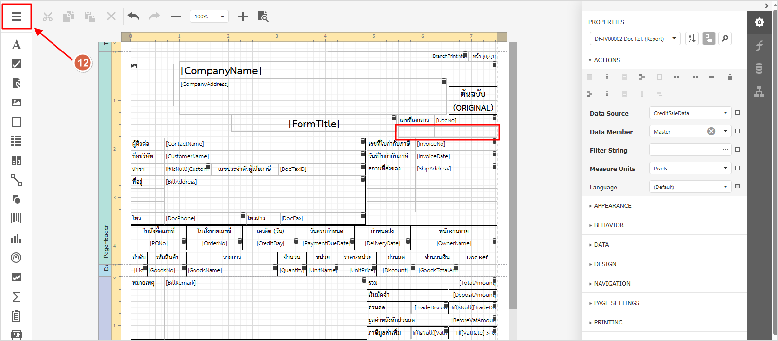 • จากนั้นเลือกเมนูที่จะแก้ไขแบบฟอร์ม ยกตัวอย่างเมนูขายเชื่อ > กดรูปปากกาเพื่อแก้ไข