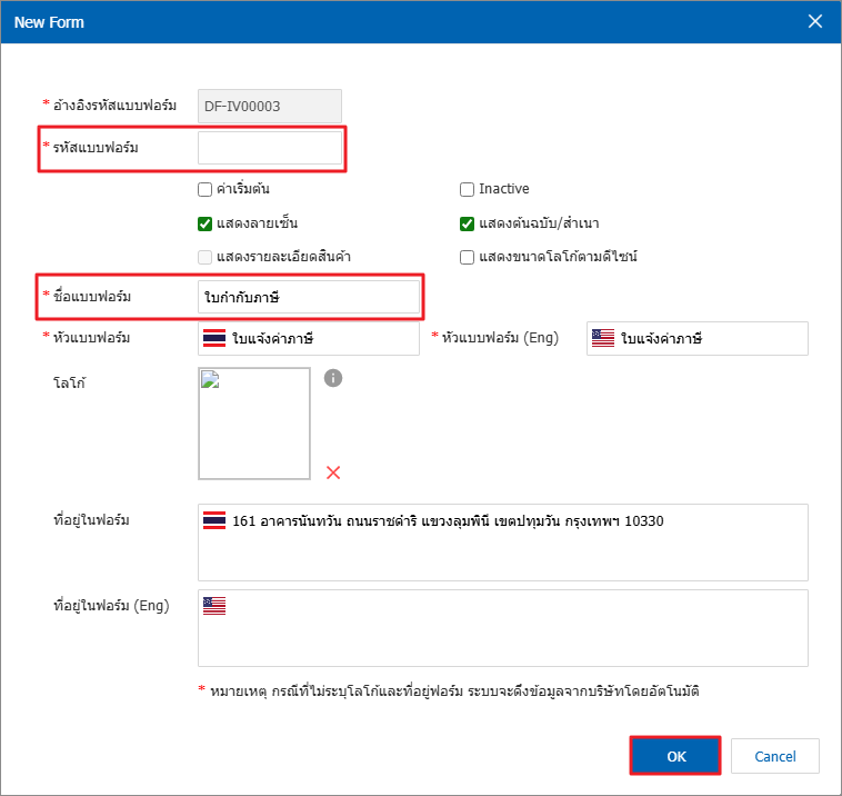 * เงื่อนไข ห้ามใช้ชื่อแบบฟอร์มซ้ำกับที่ระบบมีให้