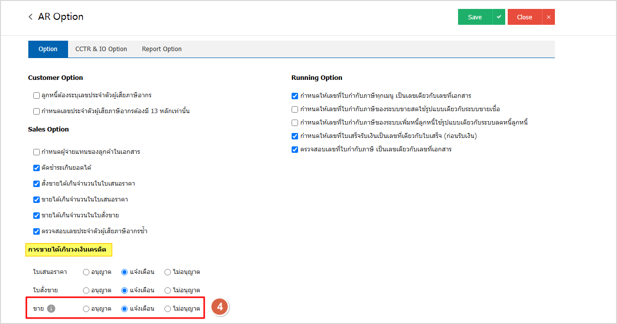วิธีการตั้งค่า Option ให้แจ้งเตือนกรณีขายเกินวงเงินเครดิตลูกหนี้ ทำอย่างไร