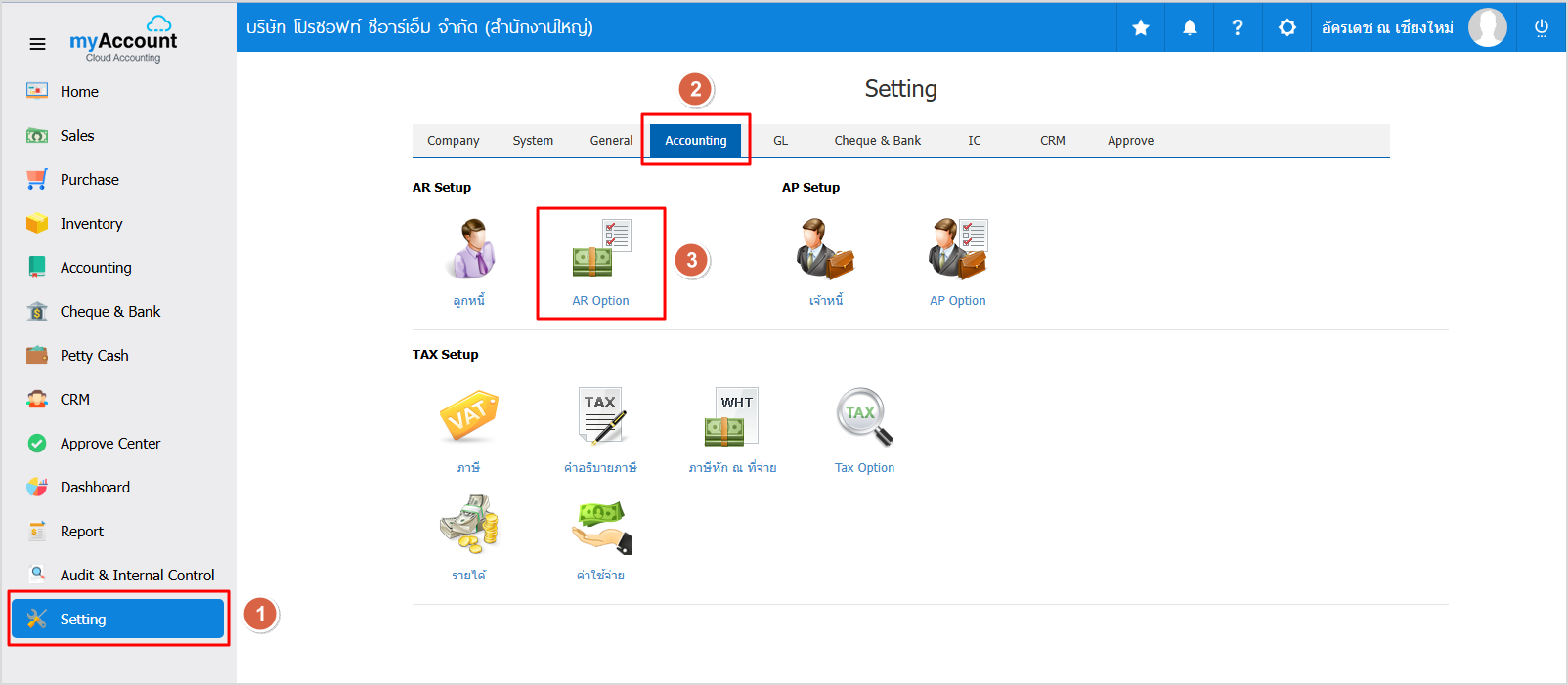 1. ให้ผู้ใช้ไปที่ Setting > Accounting > AR Option