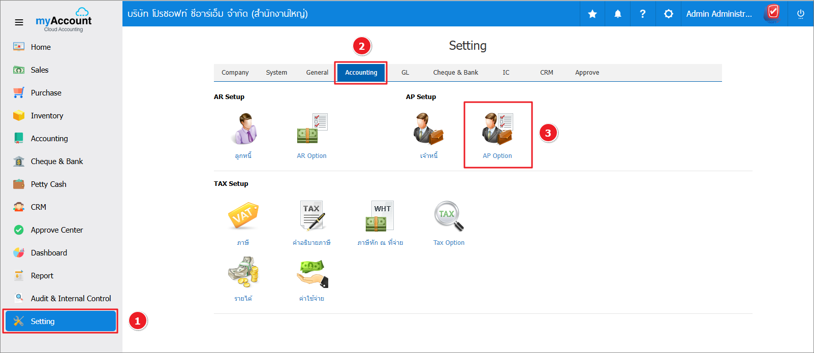 1. ให้ผู้ใช้ไปที่เมนู Setting > Accounting > AP Option