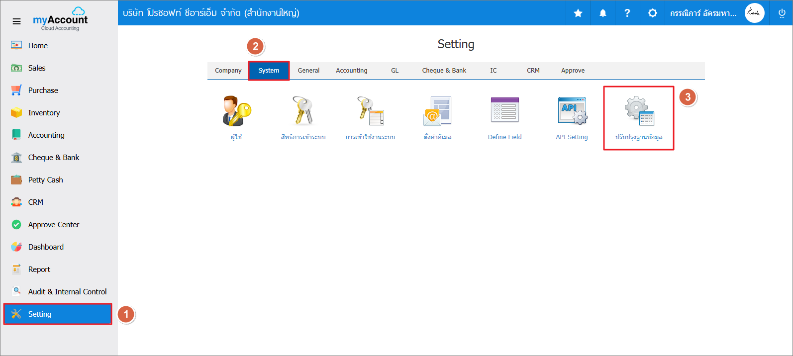 วิธีการปรับปรุงฐานข้อมูลของโปรแกรม myAccount Cloud สามารถทำได้ดังนี้