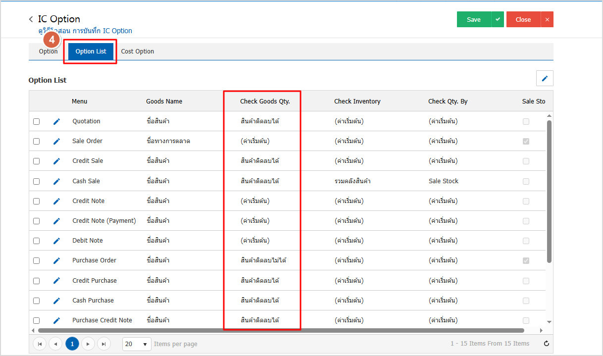 2. จากนั้นไปที่ Tab Option List > Check Good Qty.