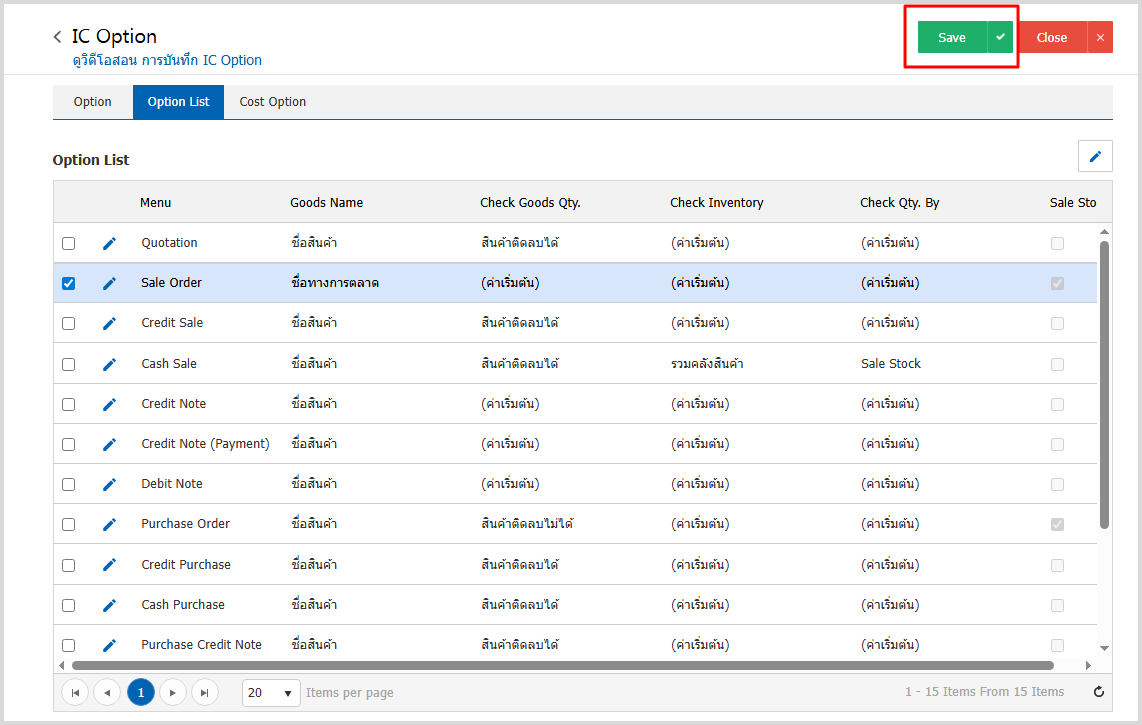 5. หลังจากกำหนดเงื่อนไขให้สามารถขายติดลบเรียบร้อยแล้ว ผู้ใช้สามารถบันทึกข้อมูลได้โดยกดปุ่ม “Save” ทางด้านขวาบน