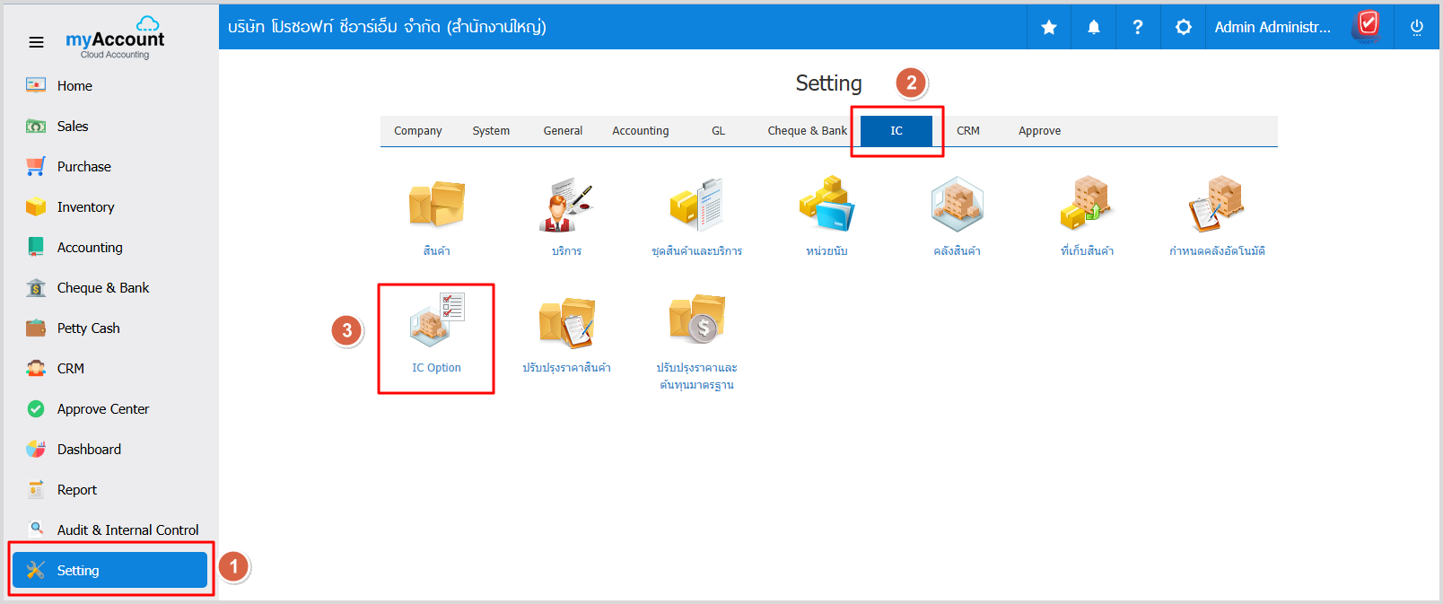 1. ให้ผู้ใช้ไปที่ Setting > IC > IC Option