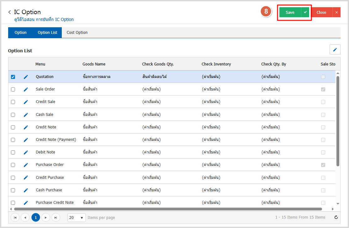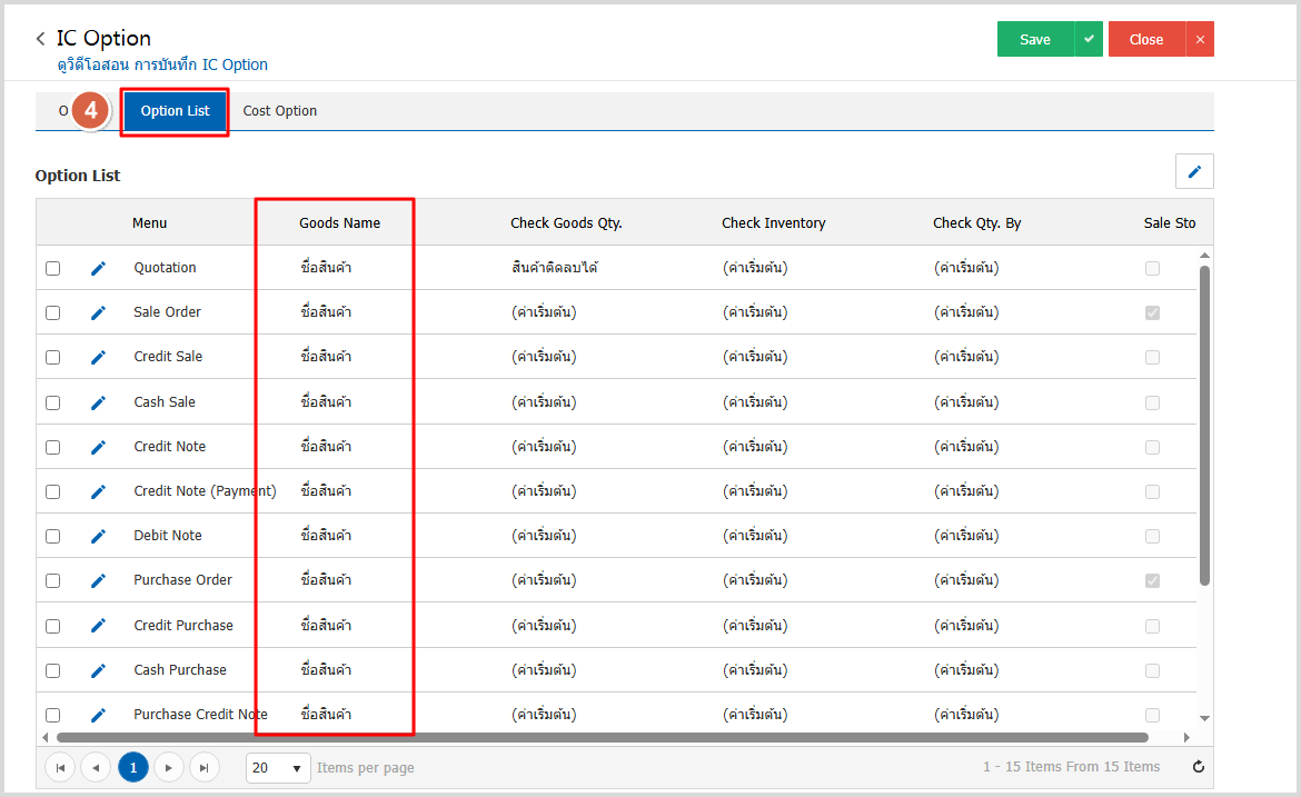 2. จากนั้นไปกำหนดที่ Tab Option List > Goods Name