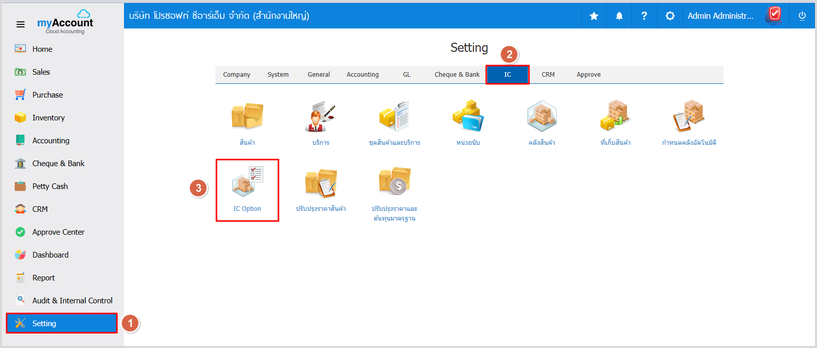 1. ให้ผู้ใช้ไปที่ Setting > IC > IC Option