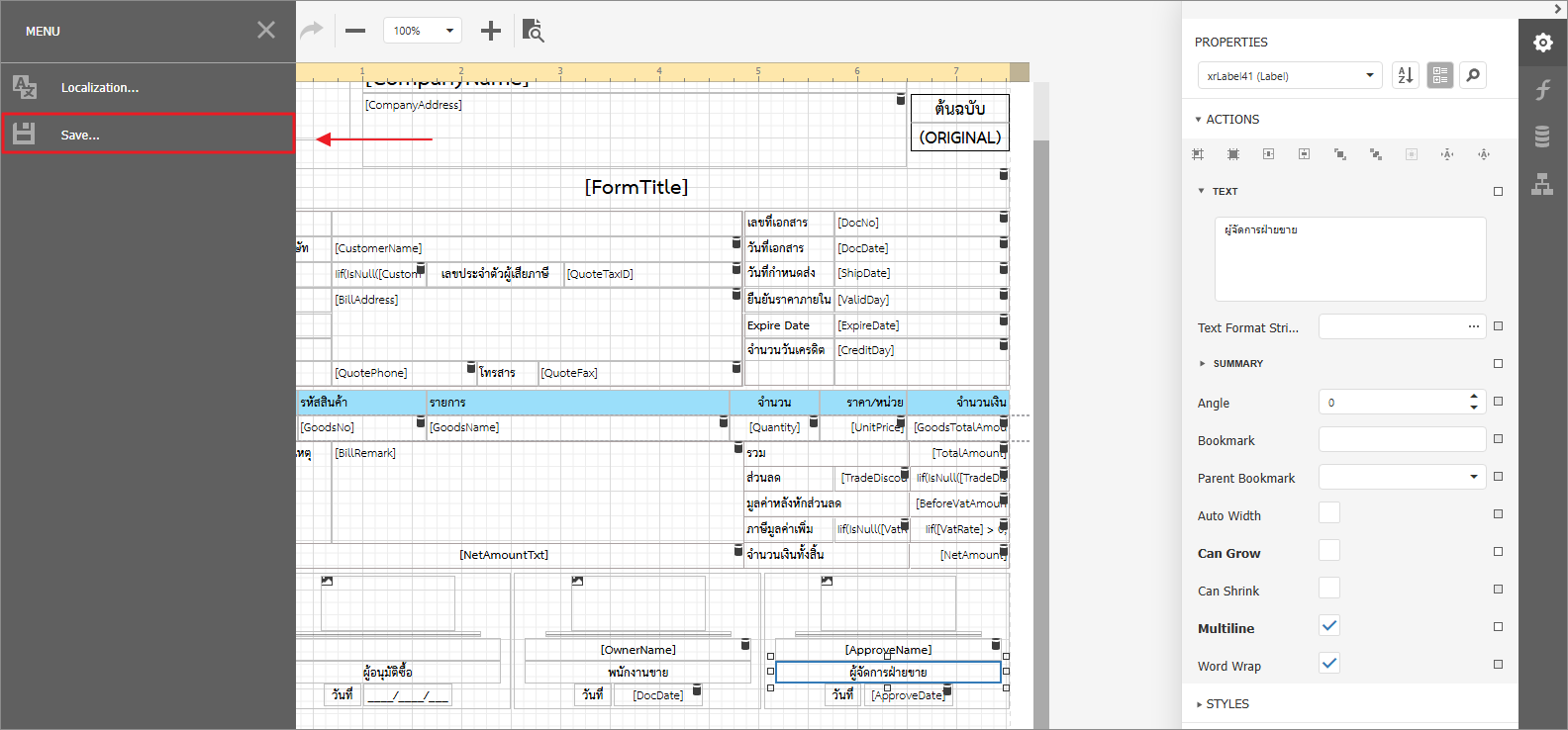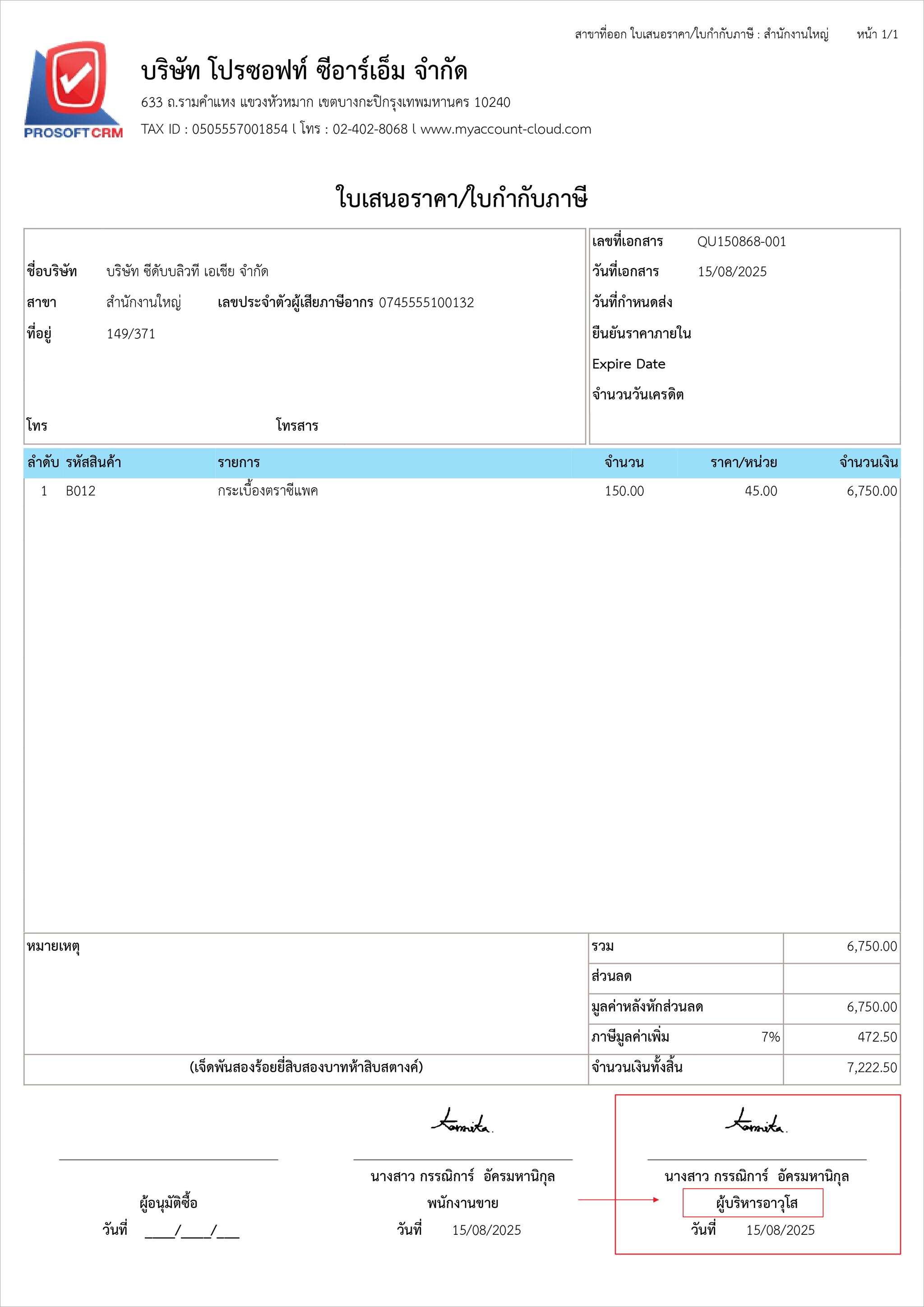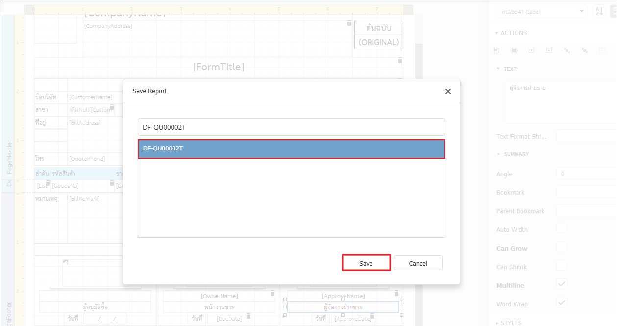 Part 2  : วิธีการฟิกตำแหน่งงานของผู้อนุมัติบนแบบฟอร์มใบเสนอราคา