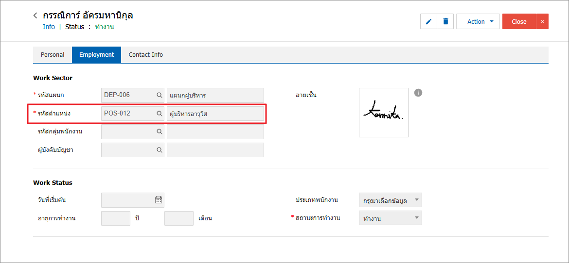 ตัวอย่างหน้าตั้งค่าพนักงาน