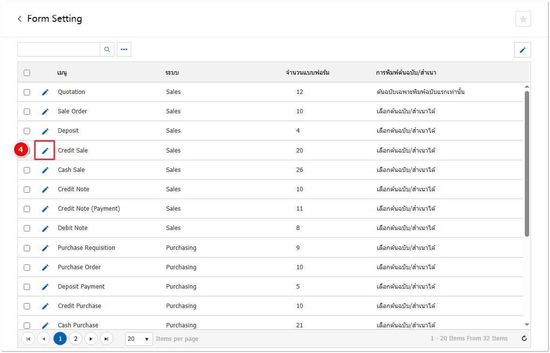 2.เลือกเมนูที่ต้องการปิดใช้งานแบบฟอร์ม โดยกดรูป  แก้ไข