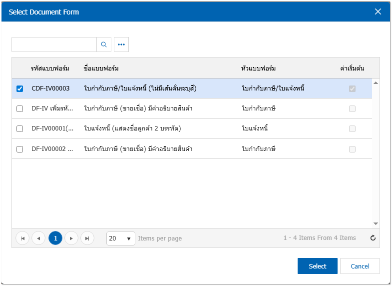 กรณีที่ต้องการปิดแบบฟอร์มที่ไม่ได้ใช้งาน เพื่อไม่ให้แสดงตอน Preview หรือปริ๊นเอกสาร โดยเป็นการ Inactive แบบฟอร์มไว้ สามารถทำได้ตามขั้นตอนดังต่อไปนี้