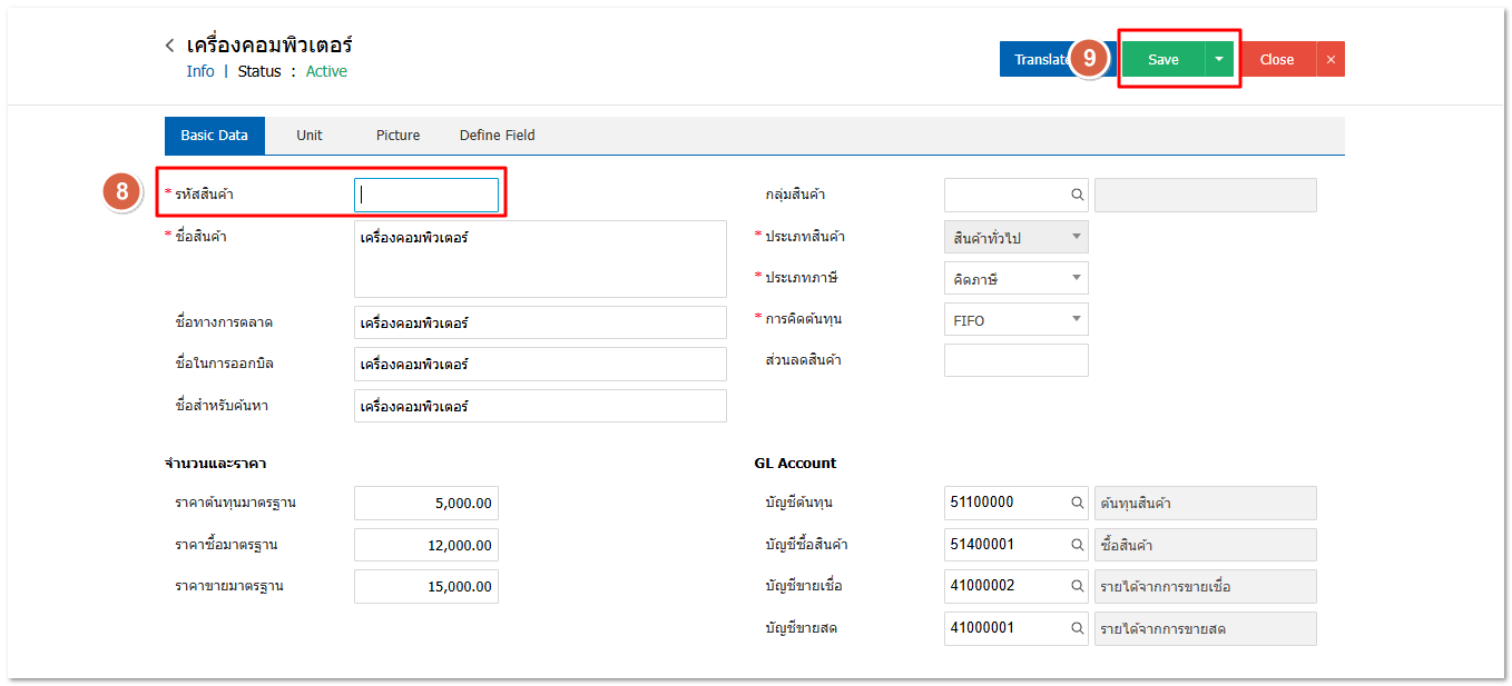 เพื่อทำการแก้ไข ระบุรหัสสินค้าใหม่จากนั้นกดปุ่ม Save เพื่อบันทึก