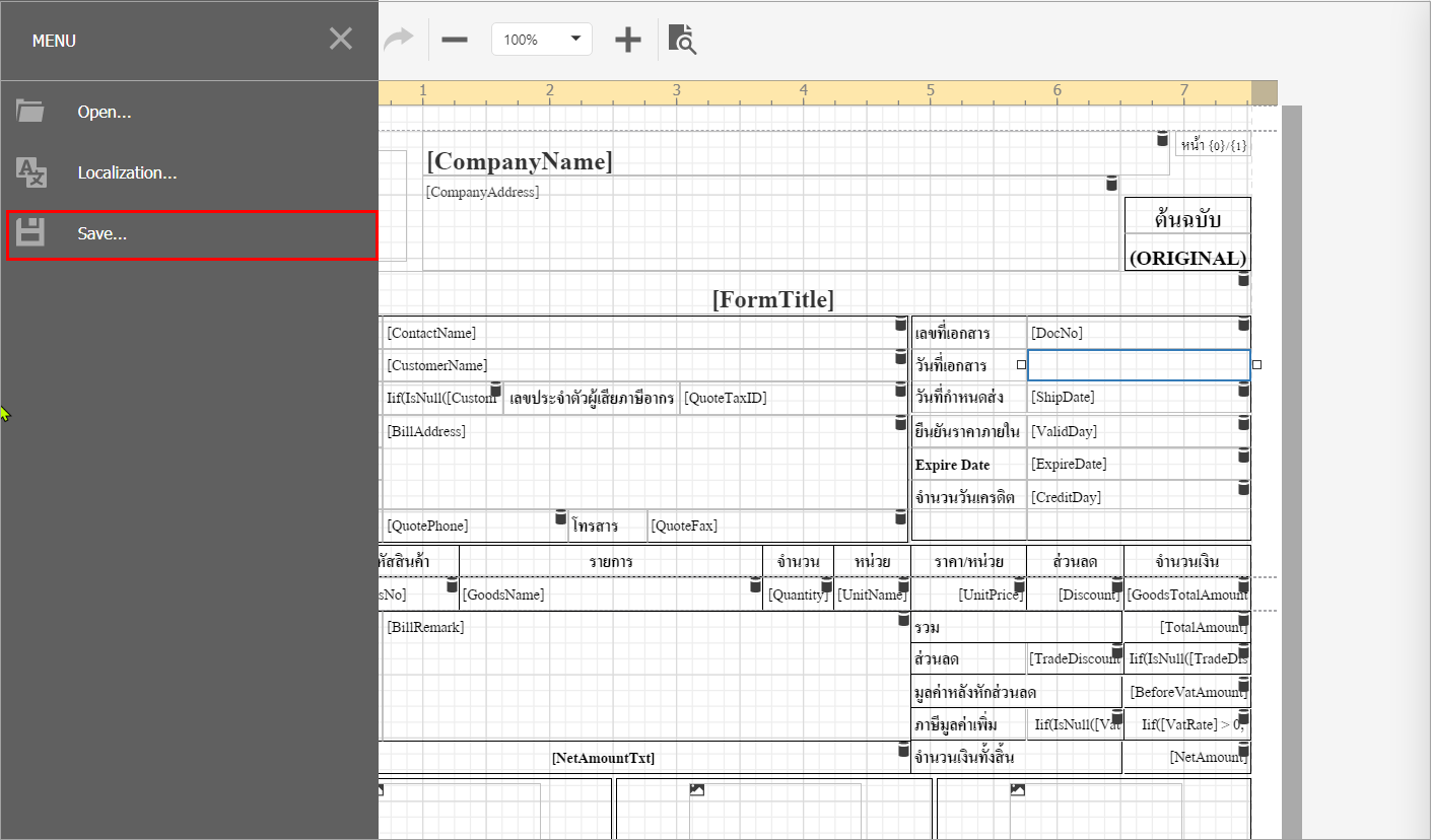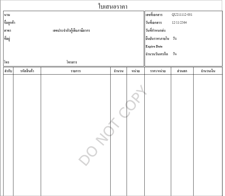 ในกรณีที่ผู้ใช้งานต้องการใส่ลายน้ำคาดเอกสารลงไป สามารถใช้ตัว Copy Design Form ช่วยปรับแต่งได้โดยทำตามขั้นตอนดังต่อไปนี้