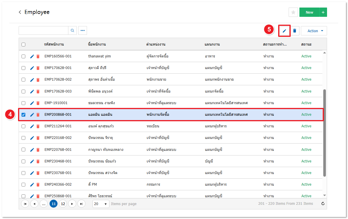 2. ค้นหาชื่อพนักงานที่ต้องการแก้ไข ตัวอย่าง