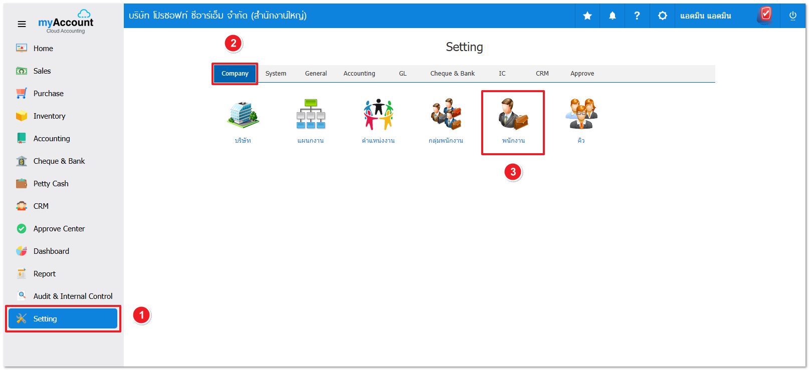 1. ให้ผู้ใช้ไปที่ Setting > Company > พนักงาน