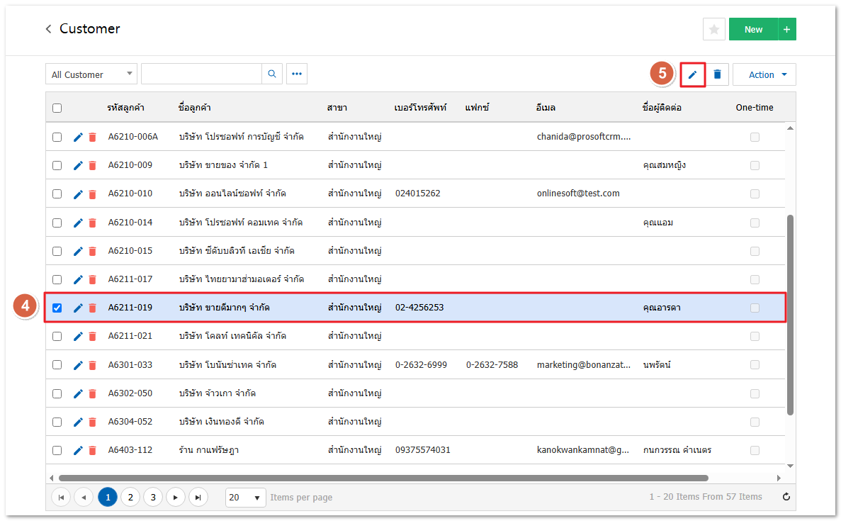 2. ค้นหาชื่อลูกหนี้ที่ต้องการแก้ไข ตัวอย่าง