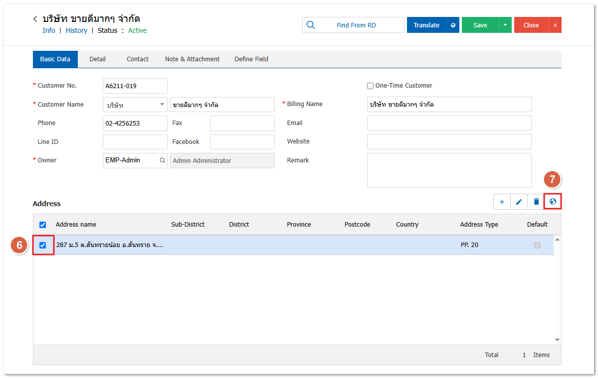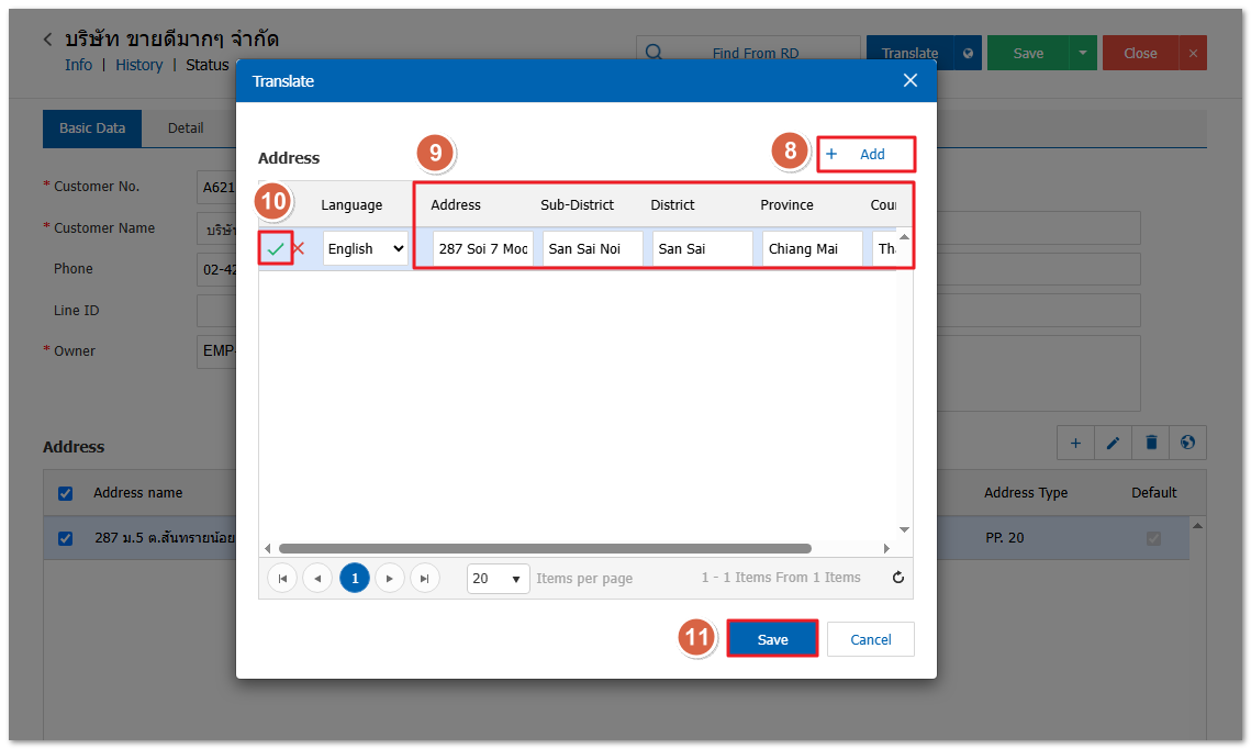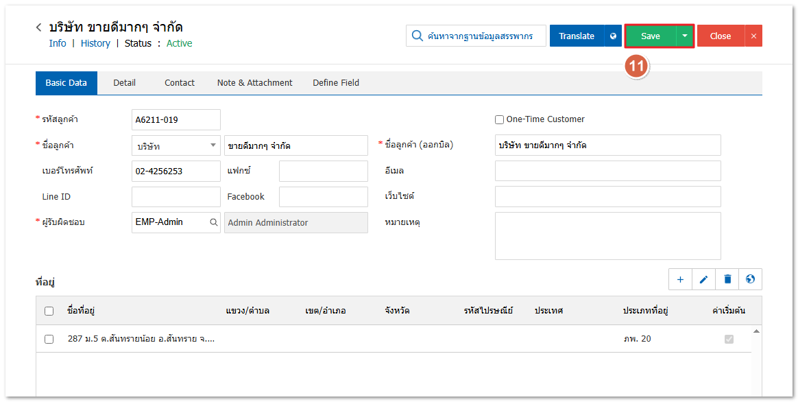 5. จากนั้นบันทึกข้อมูลลูกค้าได้เลยค่ะ เมื่อผู้ใช้ไปดูแบบฟอร์มใบกำกับภาษีภาษาอังกฤษจะแสดงชื่อลูกหนี้เป็นภาษาอังกฤษให้