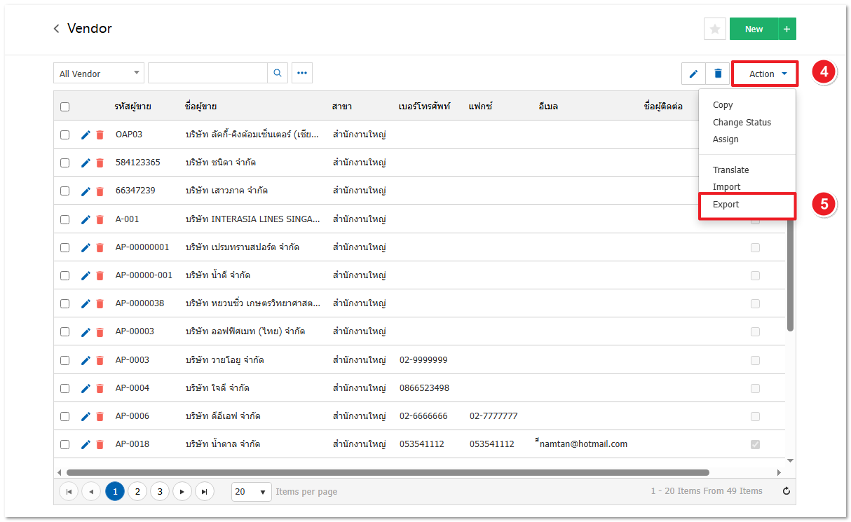 2. จากนั้นให้ผู้ใช้กด Action > Export