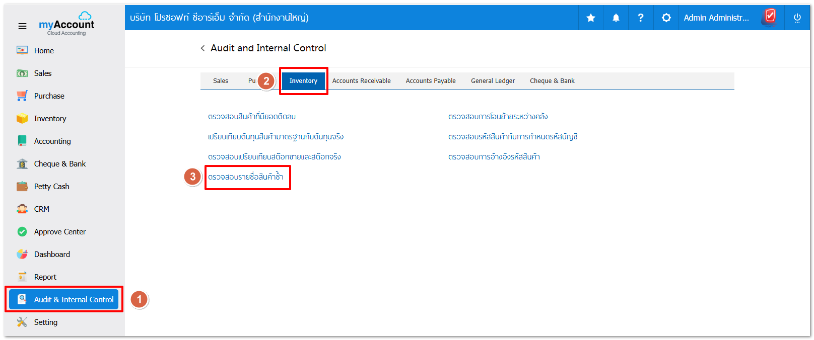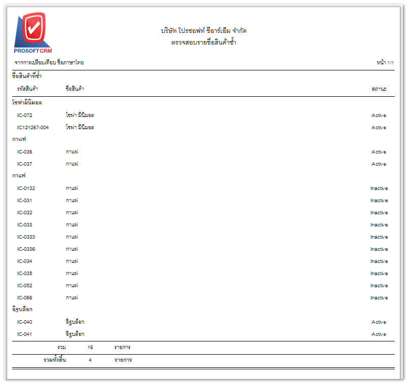 1. Audit and Internal Control > Inventory > ตรวจสอบรายชื่อสินค้าซ้ำ