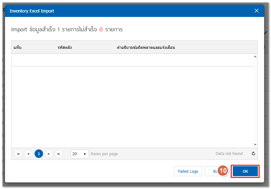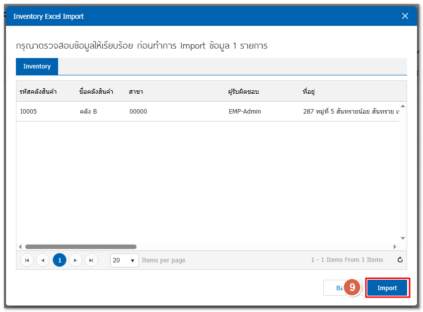 7.ระบบจะแสดงรายการสินค้าทั้งหมดที่ทำการ Import