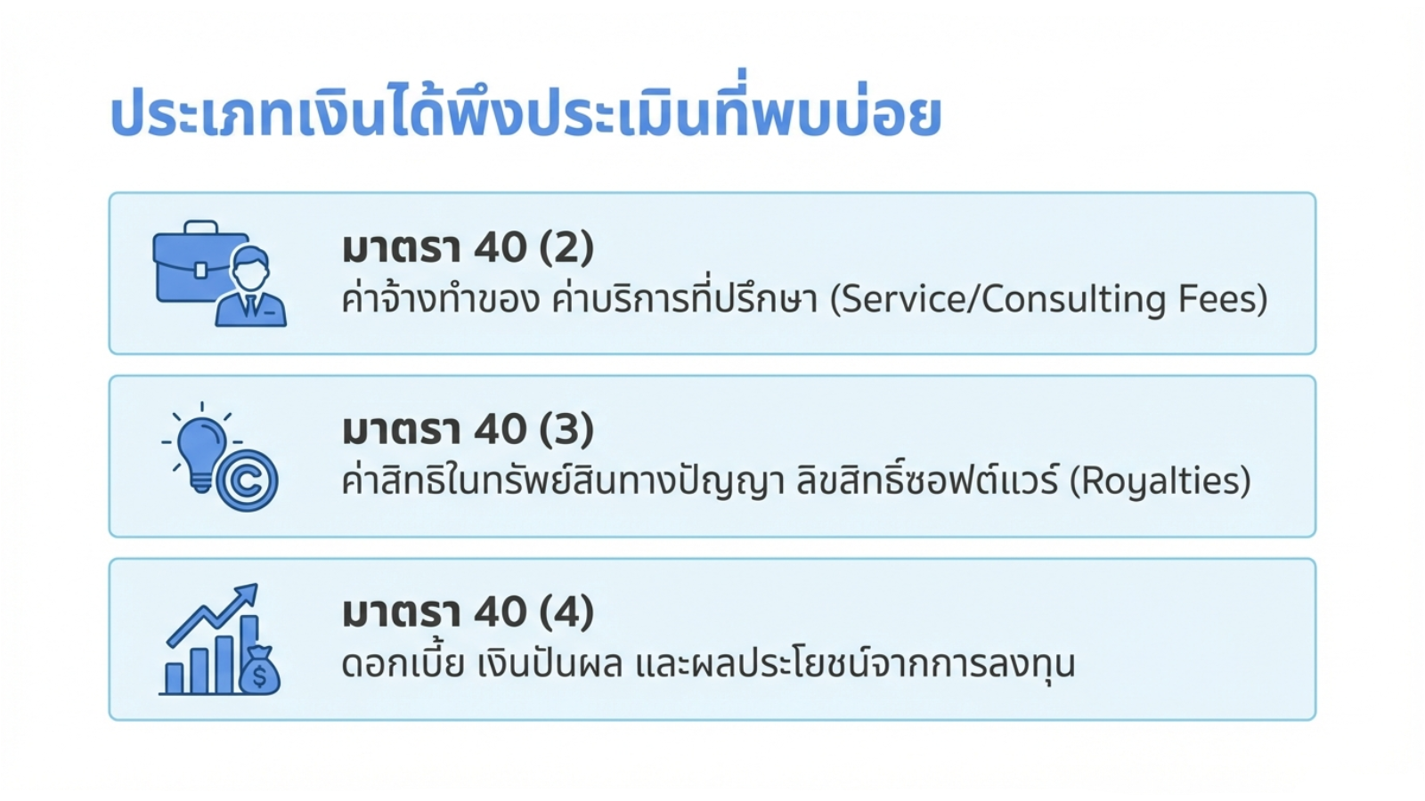 ประเภทเงินได้ที่พบได้บ่อย ได้แก่