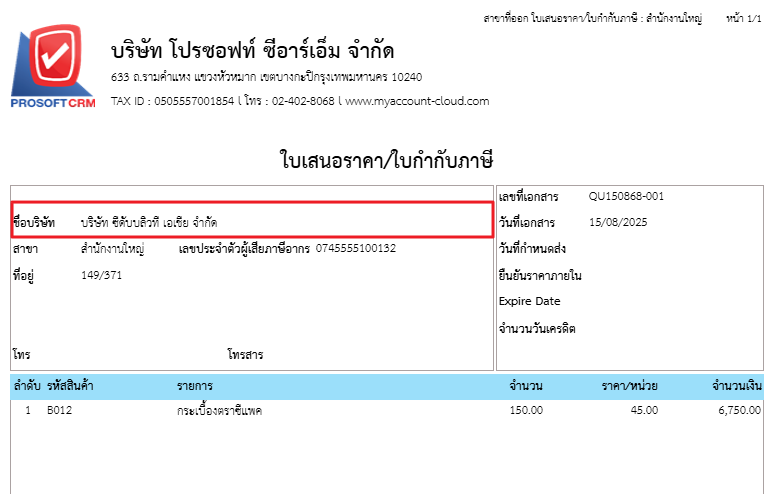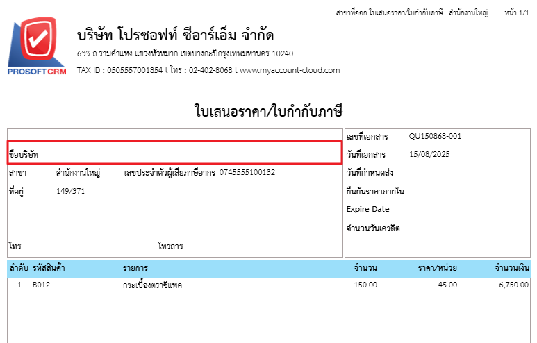 ตัวอย่างแบบฟอร์ม Copy Design ใบเสนอราคาไม่แสดงชื่อบริษัท