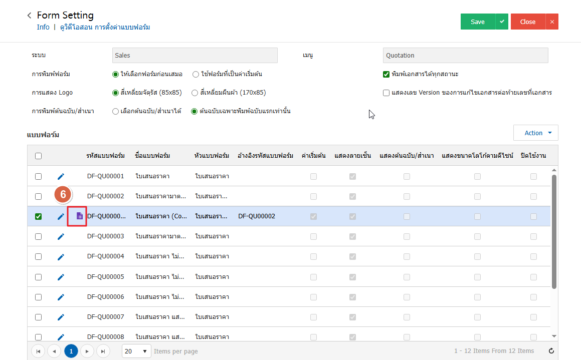 6.จากนั้นกดบันทึก Design Form โดยคลิกที่สัญลักษณ์   ด้านบนซ้ายมือ > Save > เลือกรหัสแบบฟอร์มให้ตรงกับที่แก้ไขอยู่ > Save อีกครั้ง จะขึ้นบันทึกสำเร็จ