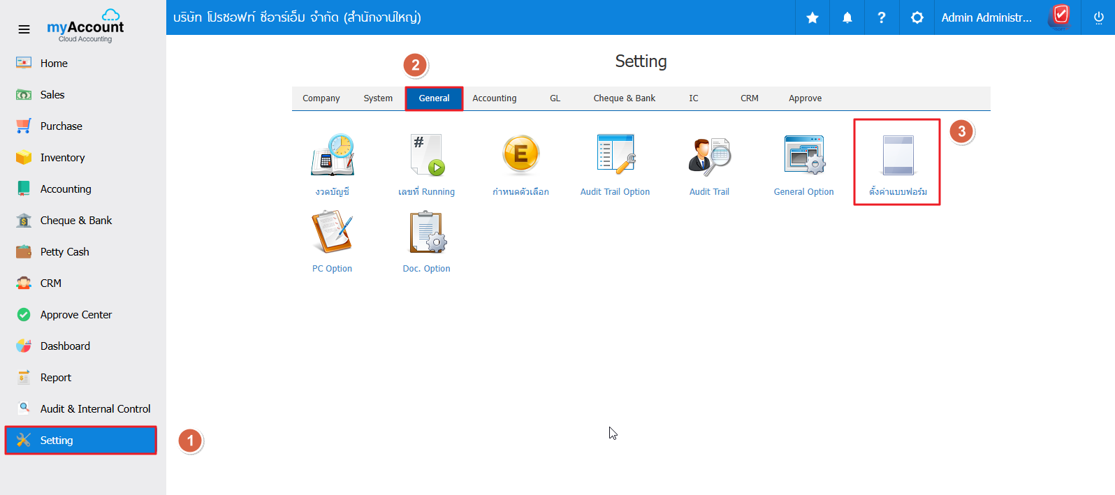 1.ให้ผู้ใช้ไปที่เมนู Setting > Setup > General > ตั้งค่าแบบฟอร์ม
