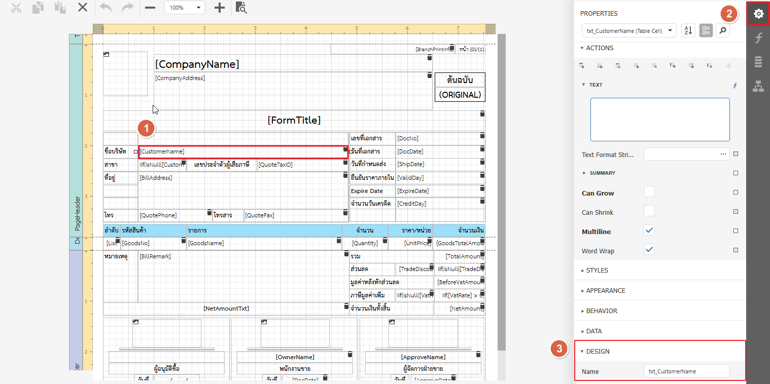 กรณีผู้ใช้งานมีการทำแบบฟอร์ม Copy Design เพื่อใช้งานเฉพาะบริษัท แต่ข้อมูลบนแบบฟอร์มบางช่องไม่แสดง เนื่องจากชื่อตารางจำค่าเดิมของแบบฟอร์มจึงไม่แสดงข้อมูล Field ใหม่ สามารถตรวจสอบและแก้ไขได้ดังนี้