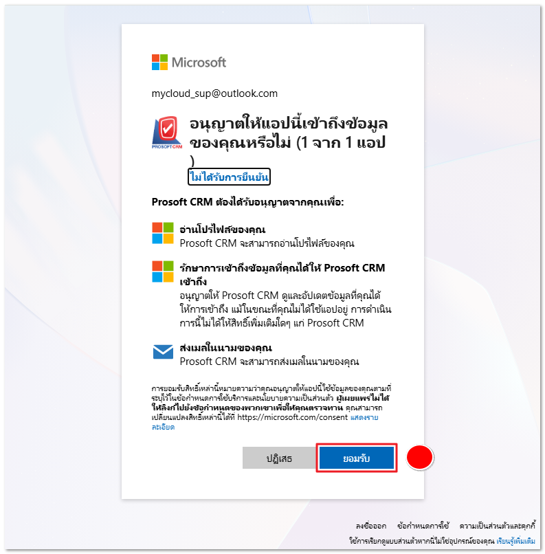 5.หลังจากที่ยืนยันตัวบุคคลในการลงชื่อเข้าใช้ Outlook เรียบร้อยแล้ว โดยระบบจะแสดงคำขอ อนุญาตให้แอปนี้เข้าถึงข้อมูลของคุณหรือไม่ ให้ผู้ใช้กดปุ่ม ยอมรับ [10] ดังรูป