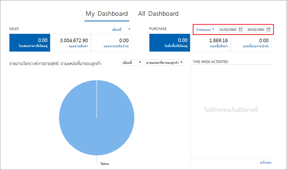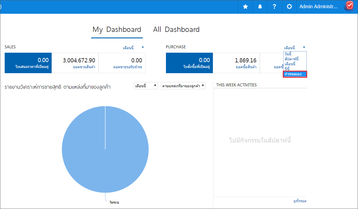 2. ระบบจะแสดงรายการเพื่อให้กำหนดวันที่เองตามรูปภาพ สามารถระบุวันเดือนปีเพื่อดูยอดขายได้